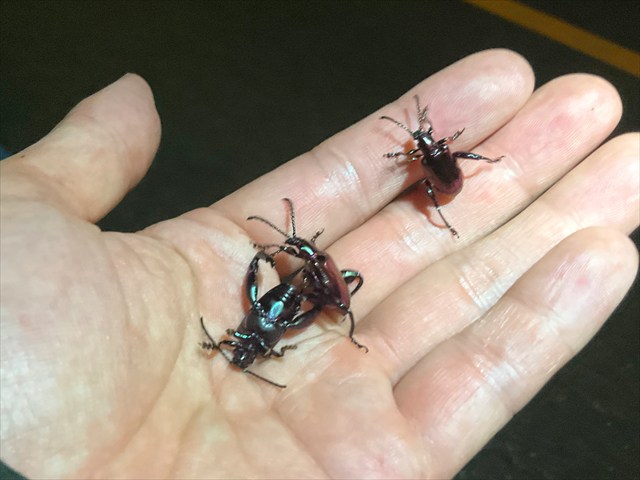 ちなみに、昆虫好きの友人いわく三重県のとはメタリックカラーが違うそうです。三重のはグリーン系で、千葉のはパープル系、「おそらく移入元が別の個体群なのではなかろうか?」とのこと。