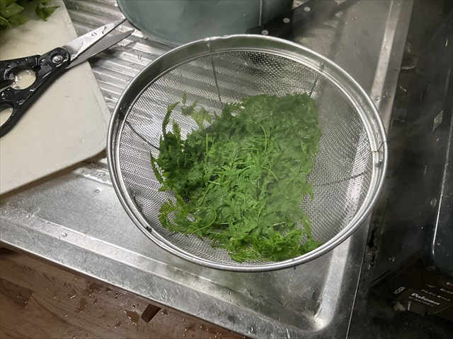 セリに似た香りがしますね。セリと比べるとやや繊細かなあ。まぁ茎細いですしね。